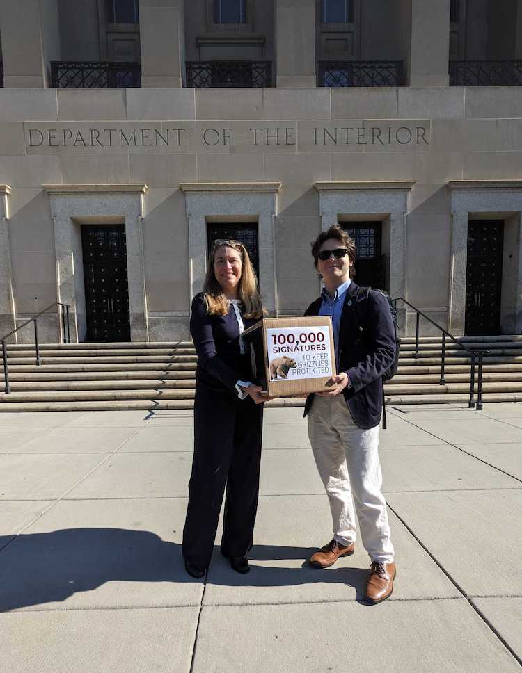 100,000 Petition Signatures Delivered to Sec. Haaland as Grizzly Bear Images Light Up Interior Building