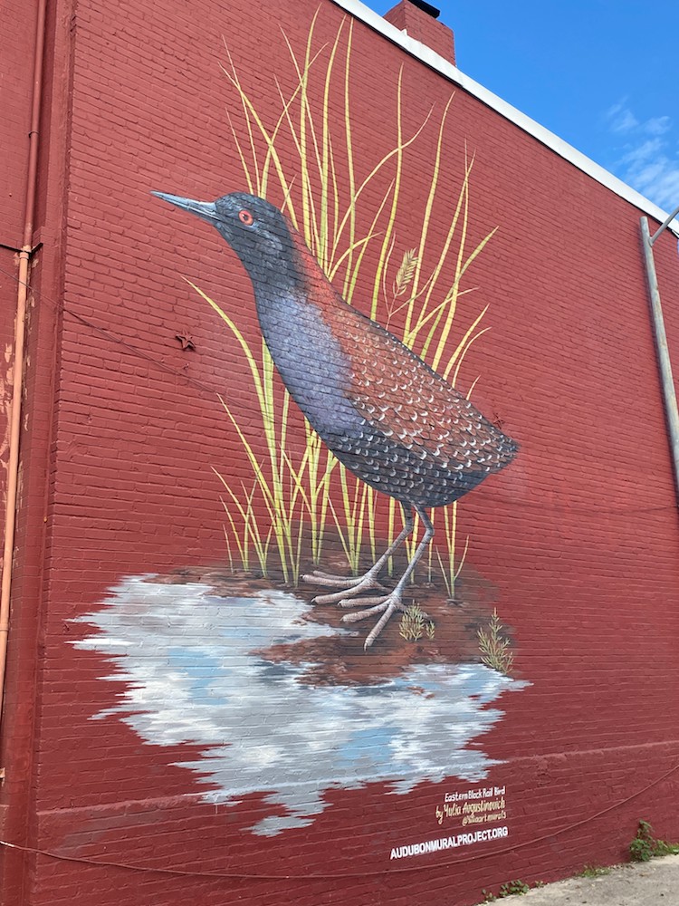 This Black Rail looms large next to the Park at LeDroit in Washington D.C. A small, secretive marsh bird, no bigger than a sparrow, the Black Rail is challenging to find, even for scientists studying the stealthy creature. Black Rails nest only a few inches above the ground, which means they are particularly susceptible to sea-level rise. Their nests can likewise be washed out by high tides and severe storms. The Eastern subspecies, which lives primarily along the Atlantic and Gulf Coasts, was listed as threatened under the Endangered Species Act in 2020. Because climate change and the ongoing conversion of their habitat continue to pose an existential threat, a network of partners is working to identify strategies to to restore the Eastern Black Rail throughout the Atlantic Flyway.