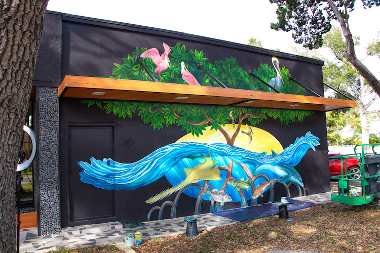 This interactive mural highlights native mangrove forests and its abundant wildlife. The endangered smalltooth sawfish, the mangrove cuckoo, and a variety of fish species depend on this keystone habitat. Viewers can learn about each species in the mural through the interactive knowledge base on Canvas of the Wild. From there they can connect with ways to help protect local endangered species. Read more here.