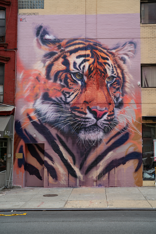 This three-story tall mural in lower Manhattan is a collaboration between FOUR PAWS and urban contemporary artist, Sonny Sundancer. Featuring a tiger, the mural raises awareness about protecting tigers around the world—both in the wild and in captivity—and highlights our #BreakTheVicious Cycle campaign, which aims to ban the commercial trade of all big cats in South Africa. Learn more here.