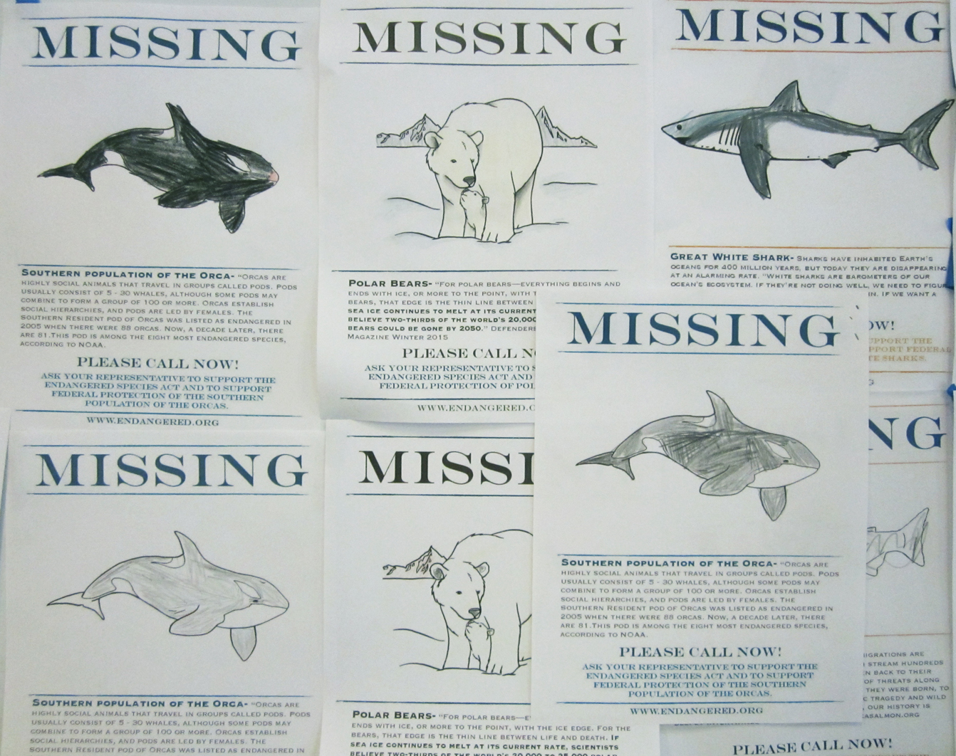 Elsewhere on this page, you’ll find the educator curriculum, missing species report outline and poster template, and additional resources that you may find helpful. For additional details about the project, you can also read this letter from Leda Huta, executive director of the Endangered Species Coalition.